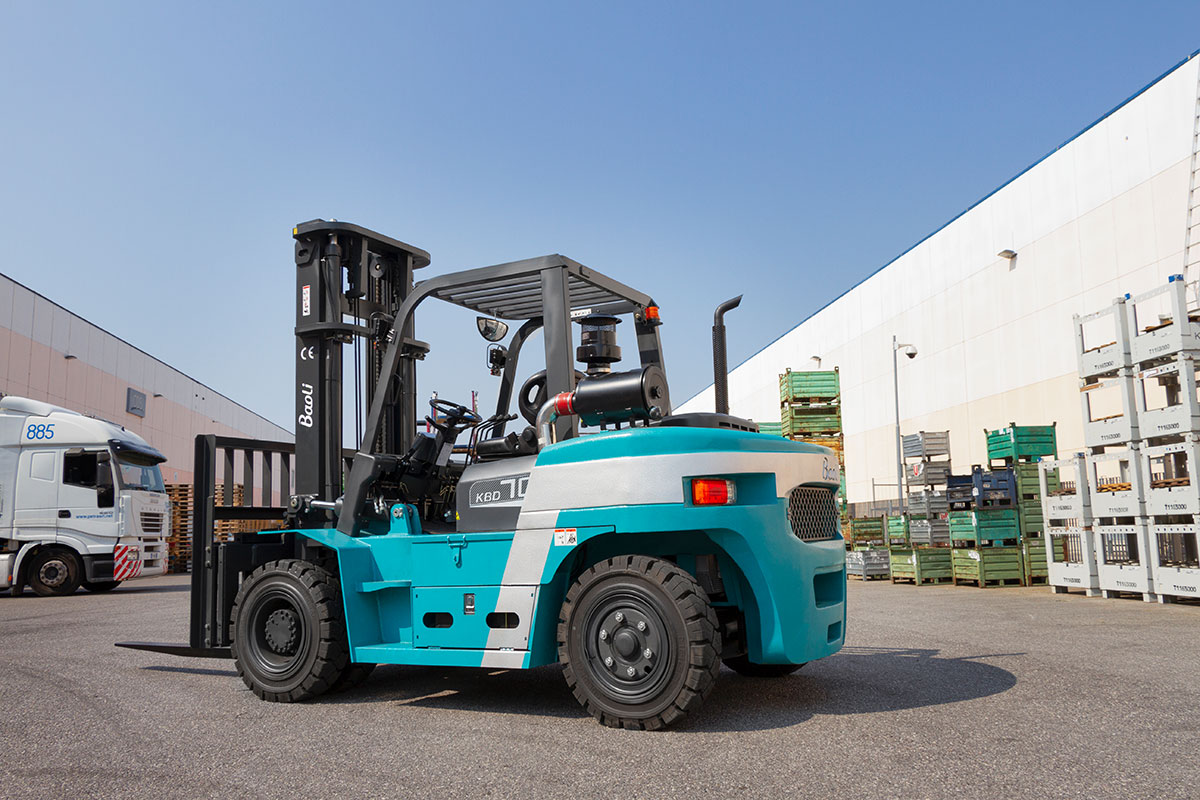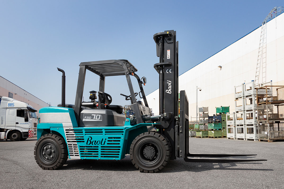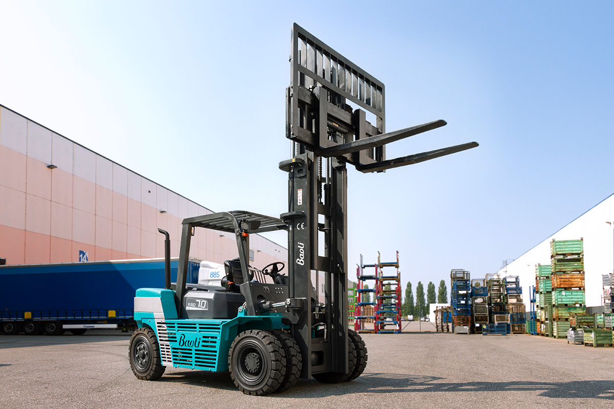 Die Baureihe KBD 50-100 von Baoli bietet dieselbetriebene Gabelstapler mit Tragfähigkeiten zwischen 5.000 und 10.000 kg bei einem Lastschwerpunkt von 600 mm. Diese Modelle sind für anspruchsvolle Schwerlastanwendungen konzipiert und zeichnen sich durch ihre robuste Bauweise und einfache Wartung aus. Je nach Marktanforderungen sind sie mit emissionsarmen EU5-konformen Motoren oder alternativen Antrieben erhältlich.Die Stapler verfügen über ein hydrodynamisches Getriebe, ein präzises Inchpedal sowie einen gefederten Hubzylinder für sanftes Absenken. Ein stabiler Mast mit verschiedenen Hubhöhenoptionen und eine widerstandsfähige Metall-Motorhaube unterstreichen die Langlebigkeit der Serie.