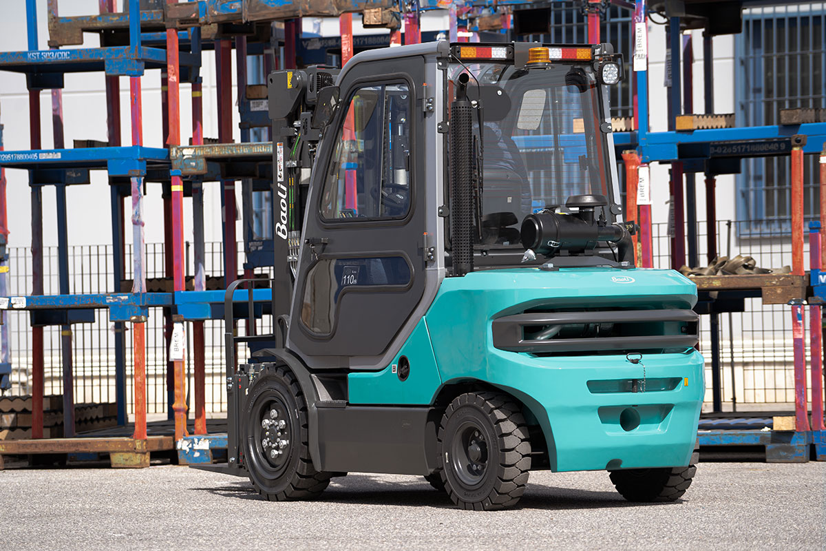 Die Baoli Gabelstapler der Serie KBD/KBG 25-35 kombinieren robuste Technik mit durchdachtem Design für vielseitige Einsätze im Innen- und Außenbereich. Mit Tragfähigkeiten von 2,5 bis 3,5 Tonnen und einer Hubhöhe von bis zu 6.500 mm eignen sie sich ideal für Lager, Industrie und Logistikzentren. Angetrieben von leistungsstarken Hyundai-Motoren – wahlweise Diesel (EU5-konform) oder LPG – bieten diese Stapler zuverlässige Leistung und Effizienz. Das hydrodynamische Getriebe sorgt für sanftes Fahrverhalten, während das optimierte Mastdesign dem Fahrer eine klare Sicht auf Gabelspitzen und Last ermöglicht. Ergonomische Merkmale wie eine gefederte Kabine, verstellbares Lenkrad, Fuß-Feststellbremse und ein Farbdisplay erhöhen den Bedienkomfort. LED-Beleuchtung und optionale Kabinenvarianten verbessern Sicherheit und Anpassungsfähigkeit.
