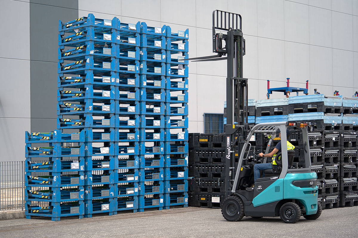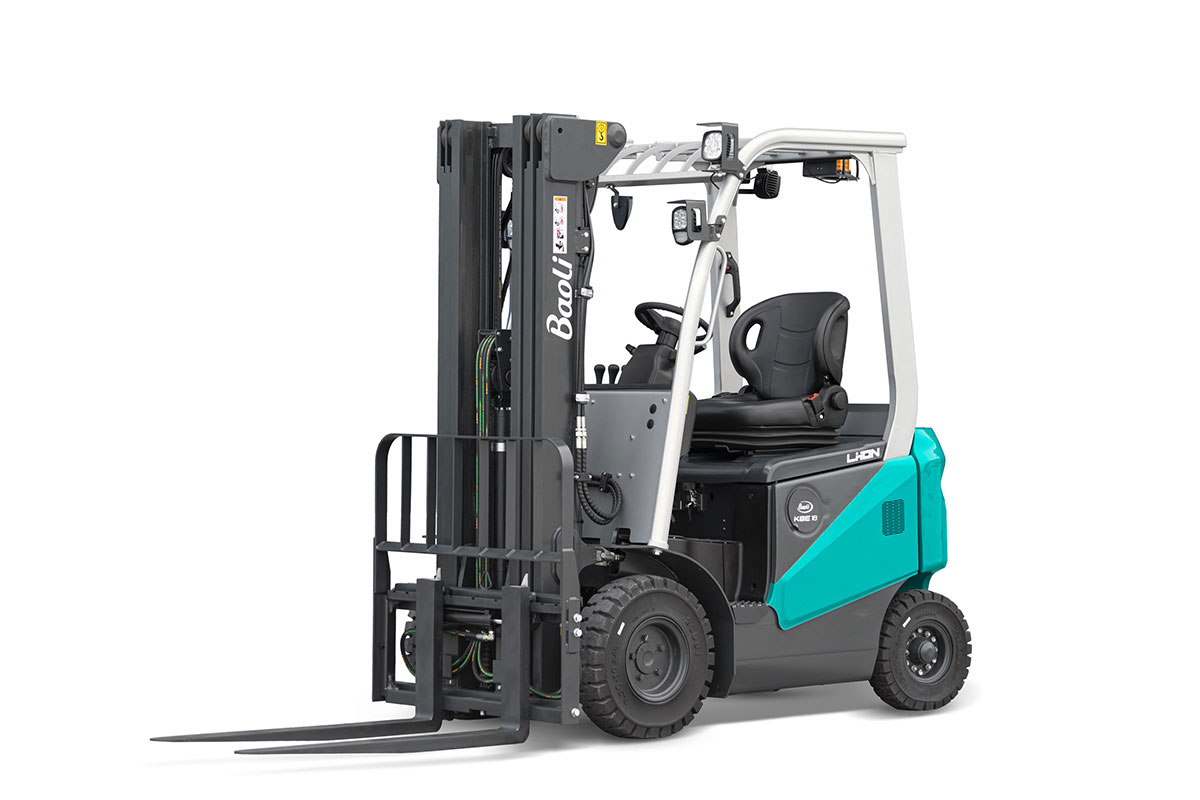 Der Baoli KBE 18-20Li ist ein elektrisch betriebener Gabelstapler mit einer Tragfähigkeit von 1,8 bis 2,0 Tonnen und einer maximalen Hubhöhe von 6,5 Metern. Dank seines kompakten Designs eignet er sich besonders für den Einsatz in engen Lagerbereichen und Innenräumen. Die Lithium-Ionen-Batterie mit 80 V und 228 Ah ermöglicht kurze Zwischenladungen, ist nahezu wartungsfrei und emittiert keine gefährlichen Gase während des Ladevorgangs. Ausgestattet mit leistungsstarken AC-Motoren bietet der KBE 18-20Li eine verbesserte Energieeffizienz und bewältigt auch steilere Rampen problemlos. Die ölbadgekühlten Lamellenbremsen reduzieren den Wartungsaufwand im Vergleich zu herkömmlichen Trommelbremsen. Für den Bedienkomfort sorgen ein ergonomisch gestalteter Fahrerarbeitsplatz mit Metallgitterstufe, großer Haltegriff, zwei USB-Anschlüsse sowie ein übersichtliches Farbdisplay. Zusätzliche Sicherheitsmerkmale wie der elektronische Vorwärts-/Rückwärtsschalter und der hintere Handgriff mit integrierter Hupe unterstützen ein sicheres Arbeiten.