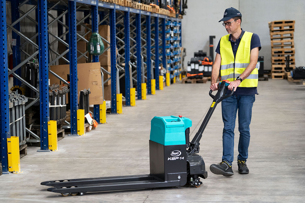 Der Baoli KBP 14-20 ist ein elektrisch betriebener Niederhubwagen, der für den innerbetrieblichen Transport von Lasten zwischen 1.400 und 2.000 kg konzipiert wurde. Mit seinem kompakten Design und der Kriechgangfunktion eignet er sich besonders für den Einsatz in beengten Lagerbereichen, Einzelhandelsgeschäften und auf Ladebordwänden. Ausgestattet mit einer 48-Volt-Lithium-Ionen-Batterie (20 oder 30 Ah) und einem integrierten Ladegerät ermöglicht der KBP 14-20 flexibles Zwischenladen an jeder 230-Volt-Steckdose. Eine vollständige Ladung ist in etwa zwei Stunden erreicht, was die Einsatzbereitschaft erhöht. Die niedrige Bauhöhe von 700 mm verbessert die Sicht auf Gabelspitzen und Ladung, während die 5-Punkt-Auflage für Stabilität beim Transport sorgt. Ergonomische Bedienelemente und ein langer Deichselarm erleichtern die Handhabung und erhöhen die Sicherheit. Ein PIN-Code-Zugang schützt vor unbefugter Nutzung.